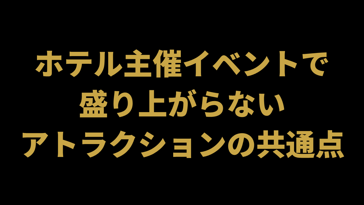 ホテル主催イベントでは、進行の美しさがそのまま満足度につながります。アトラクション単体ではなく、全体の流れの中で「最も効果が出る位置」に置かれているかが重要です。