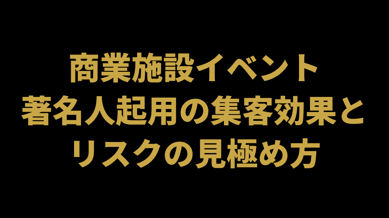 著名人の起用は、短期間で大きな集客効果を生み出せる一方で、コストや運営リスクも伴う諸刃の剣です。成功の鍵は、単発の話題づくりに終わらせず、施設全体の価値向上につなげる設計にあります。ターゲット設定、ブランド適合性、運営体制を丁寧に整えたうえで活用すれば、商業施設イベントの強力な武器となります。